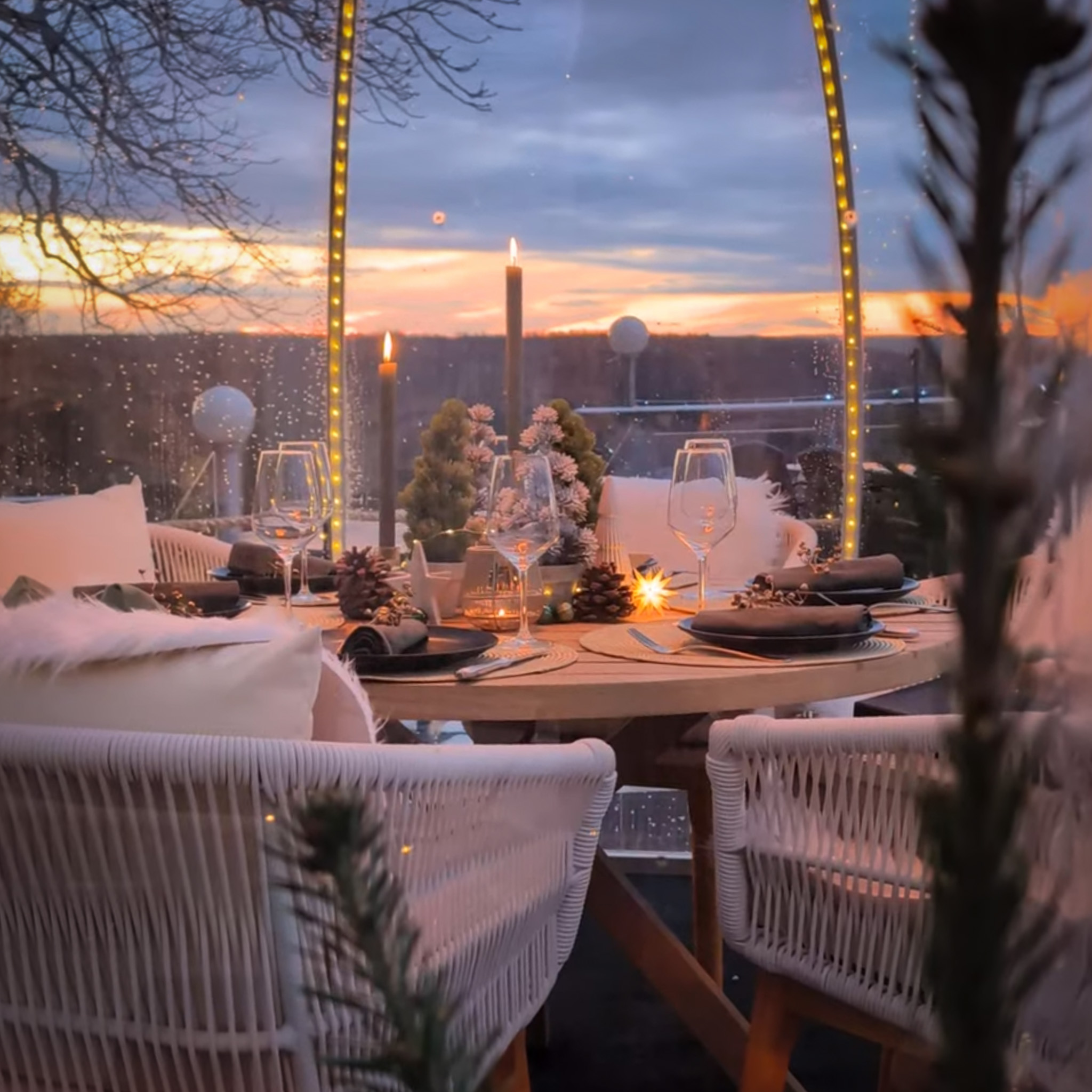 Ob als Paar oder mit Freunden, die Kuppel bietet Platz für 2 bis 6 Personen und lässt sich flexibel für verschiedene Anlässe nutzen.