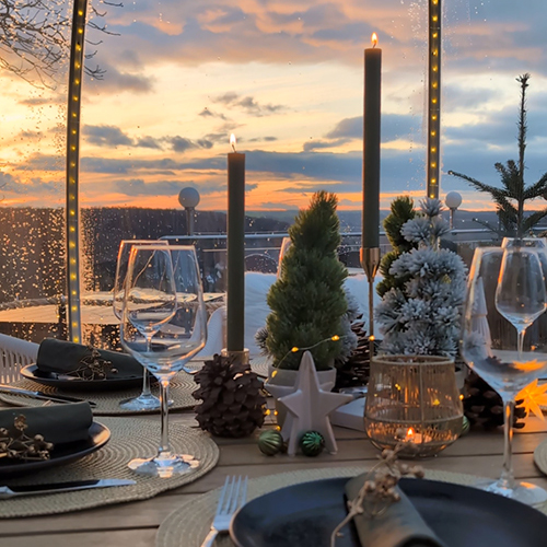 In der Weinbergkuppel können Sie aus unseren exklusiven Wintermenüs oder dem Frühstück wählen. Bitte geben Sie bei Ihrer Reservierung zwingend Ihre Menüwahl an.